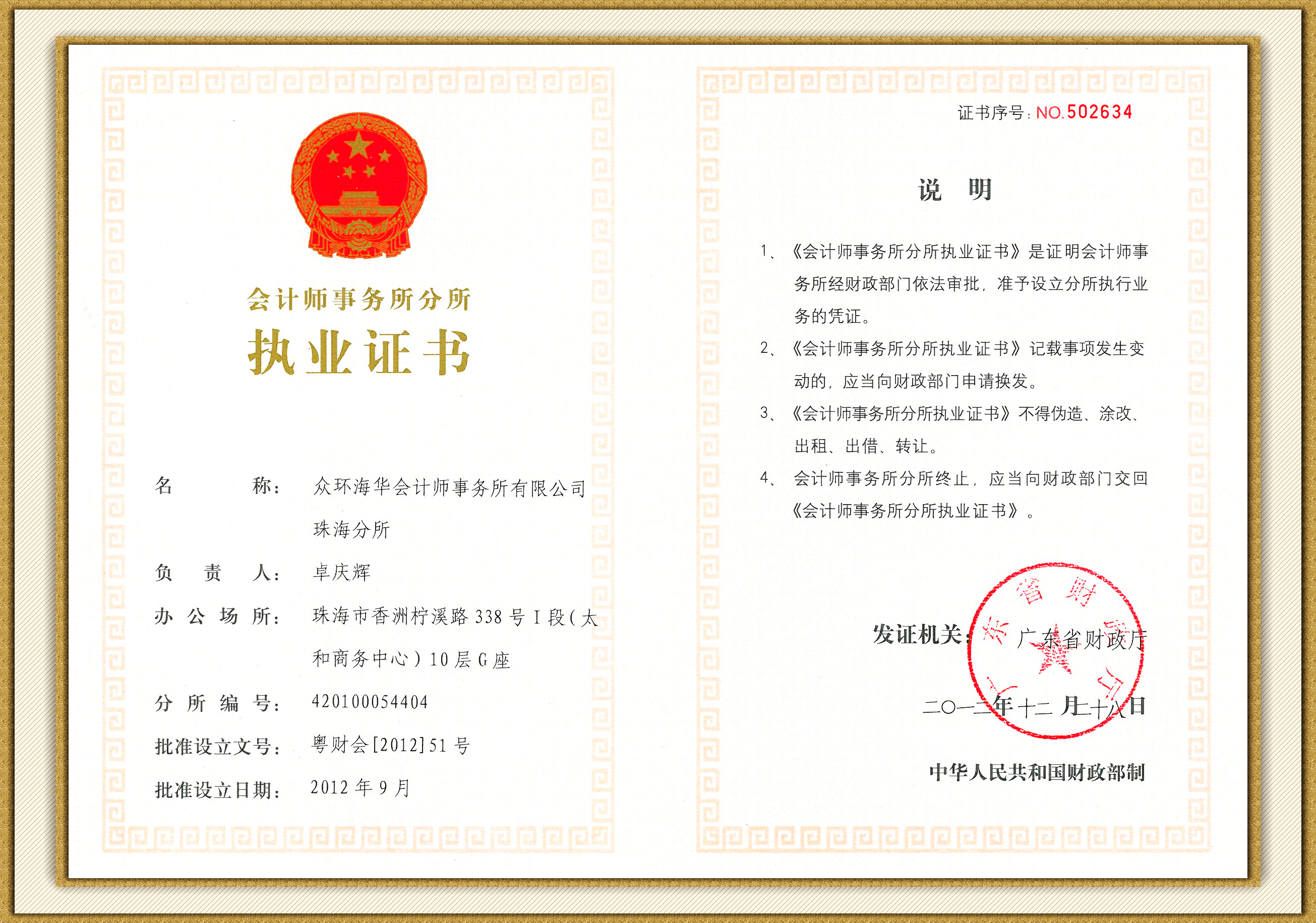 会计师事务所执业证书